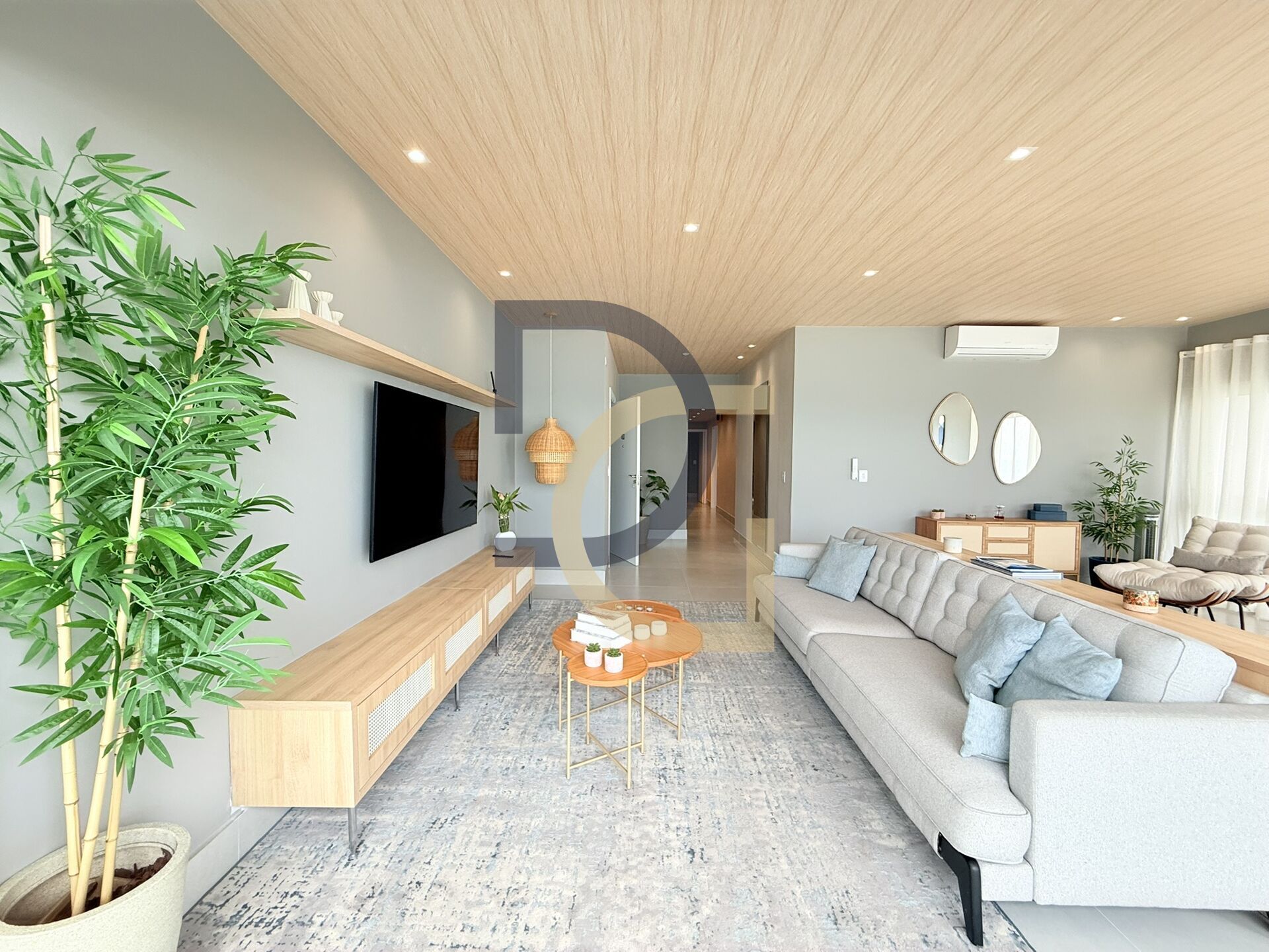 Ar condicionado nos dormitórios e na sala.