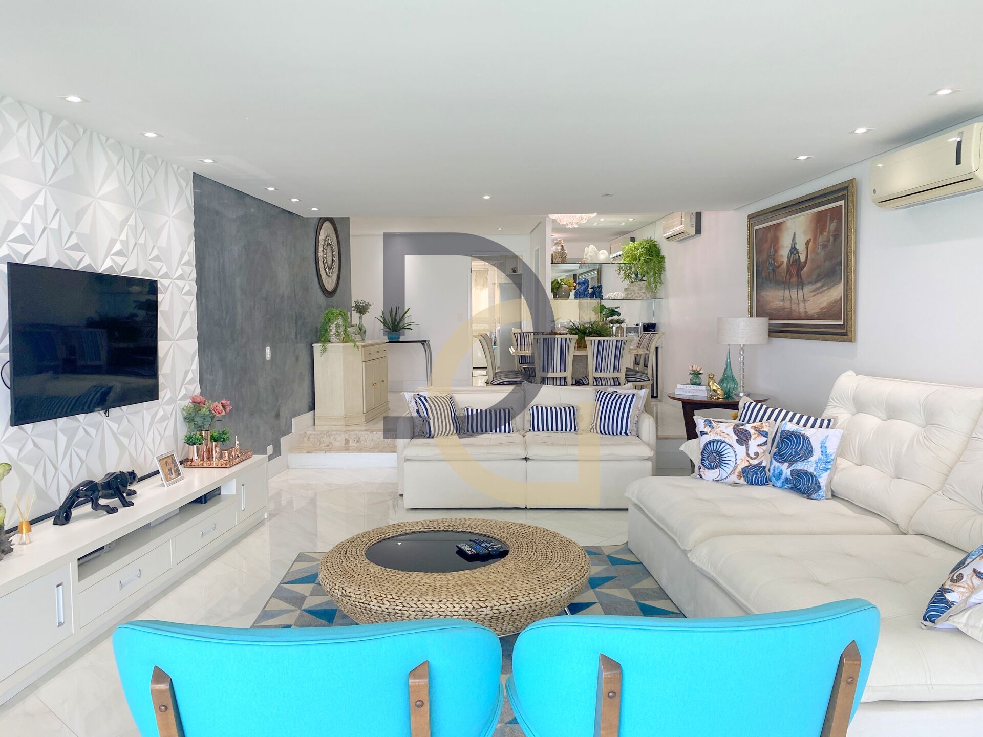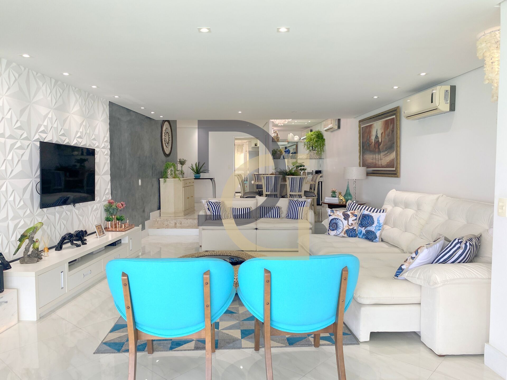 Ar condicionado nos dormitórios e na sala.